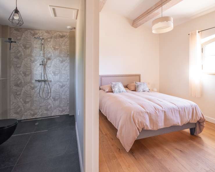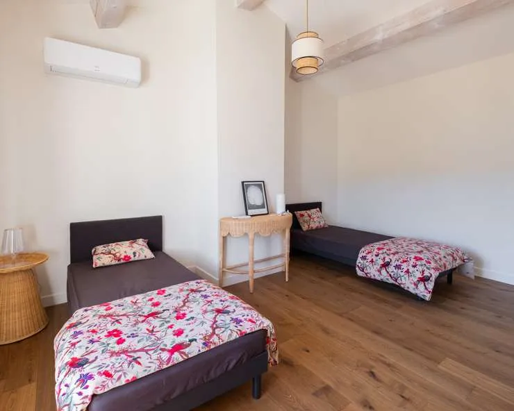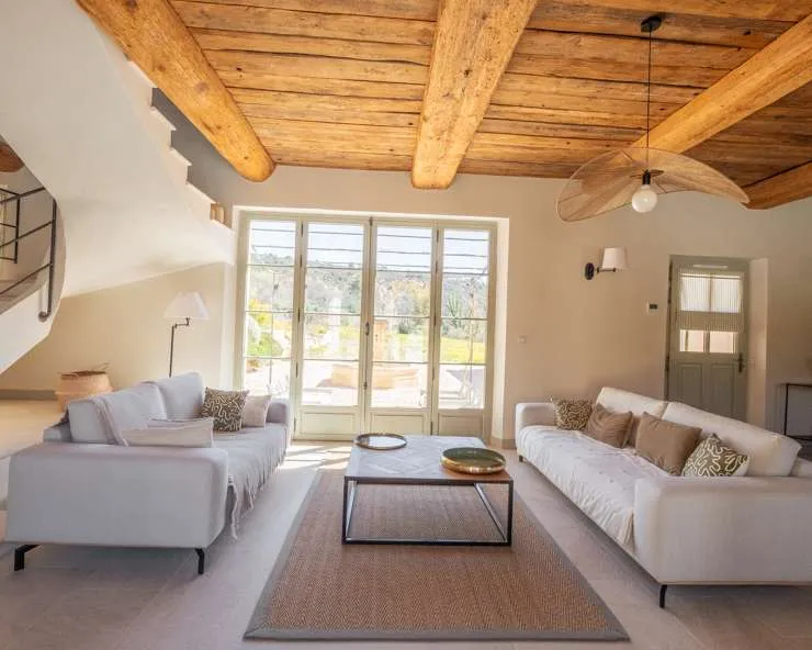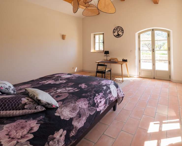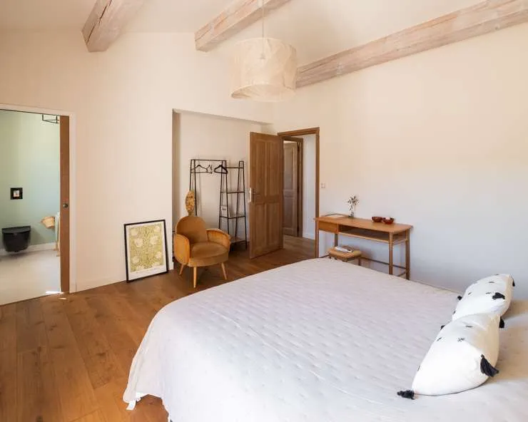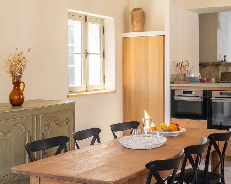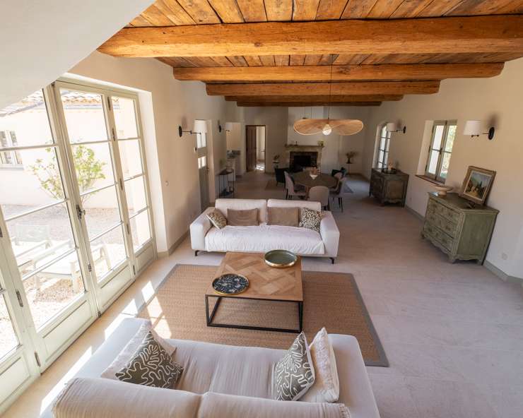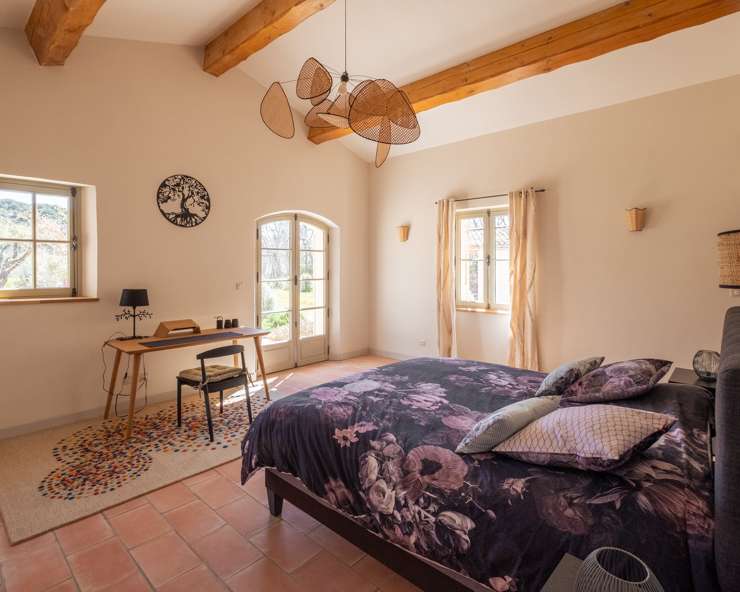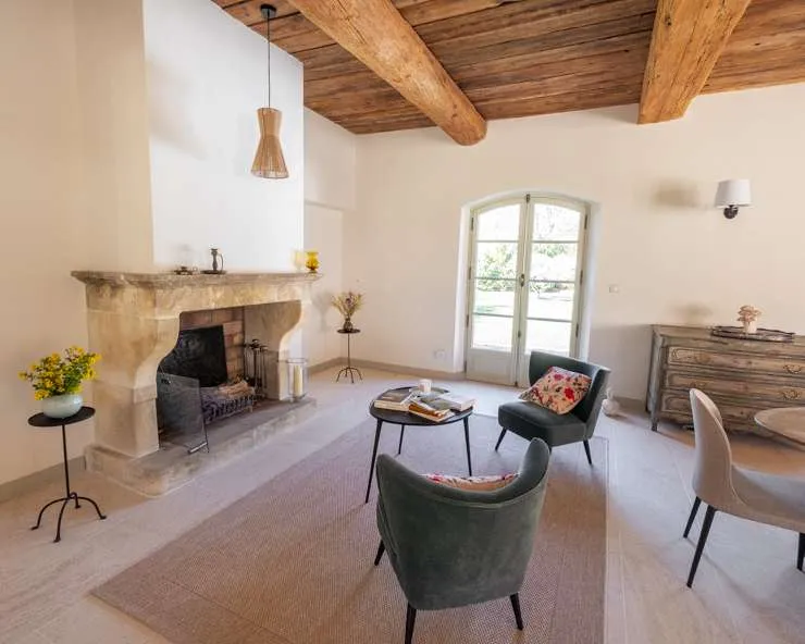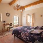 Votre maison de vacances est une maison en pierre typiquement provençale avec des carreaux de terre cuite, des poutres au plafond et une décoration intérieure raffinée.