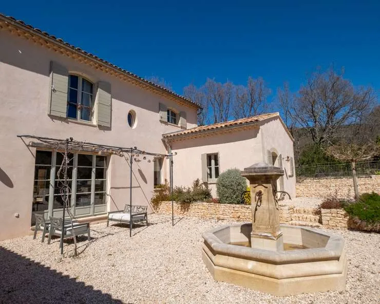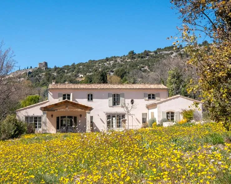 Une belle maison de vacances avec une vue sur les montagnes du Luberon.