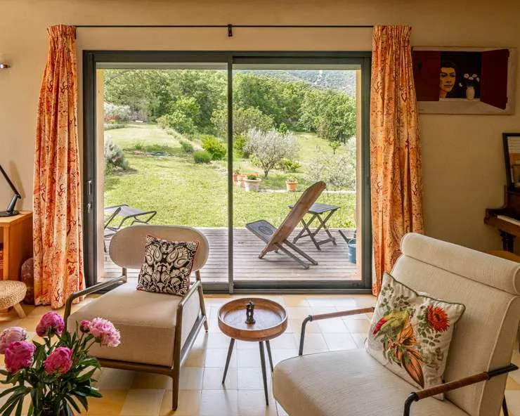 Erholen Sie sich im malerischen Luberon in einer komfortablen, separaten Ferienwohnung mit Blick auf das Gebirge und Garten – ideal für Paare oder zwei Ruhesuchende.