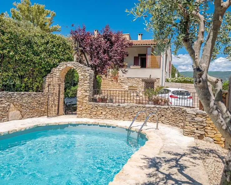 Dieses wunderschöne und ruhige Ferienhaus gehört zu einem früheren Mas (so nennt man in Südfrankreich mit Steinmauern umschlossene Anwesen), welches 4 km vom malerischen Ockerfelsendorf Roussillon liegt.
